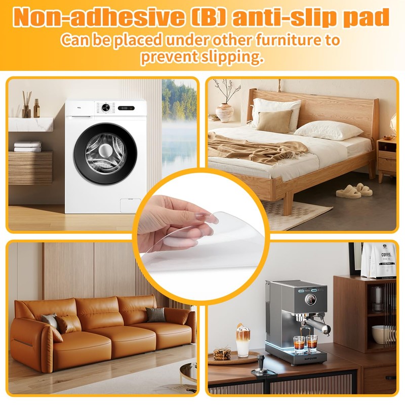 - 5. Protective Cushioning: The non-adhesive (B) anti-slip pad will not damage the floor surface and can be used under various furniture items such as kettles, coffee machines, and bread machines for anti-slip purposes.
