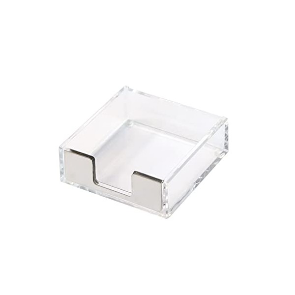 - Stylish Design: clear acrylic body with silver tone front view, a simple but modern design memo cube holder dispenser, harmony with your workspace environment, keeping clean and tidy for your desk.