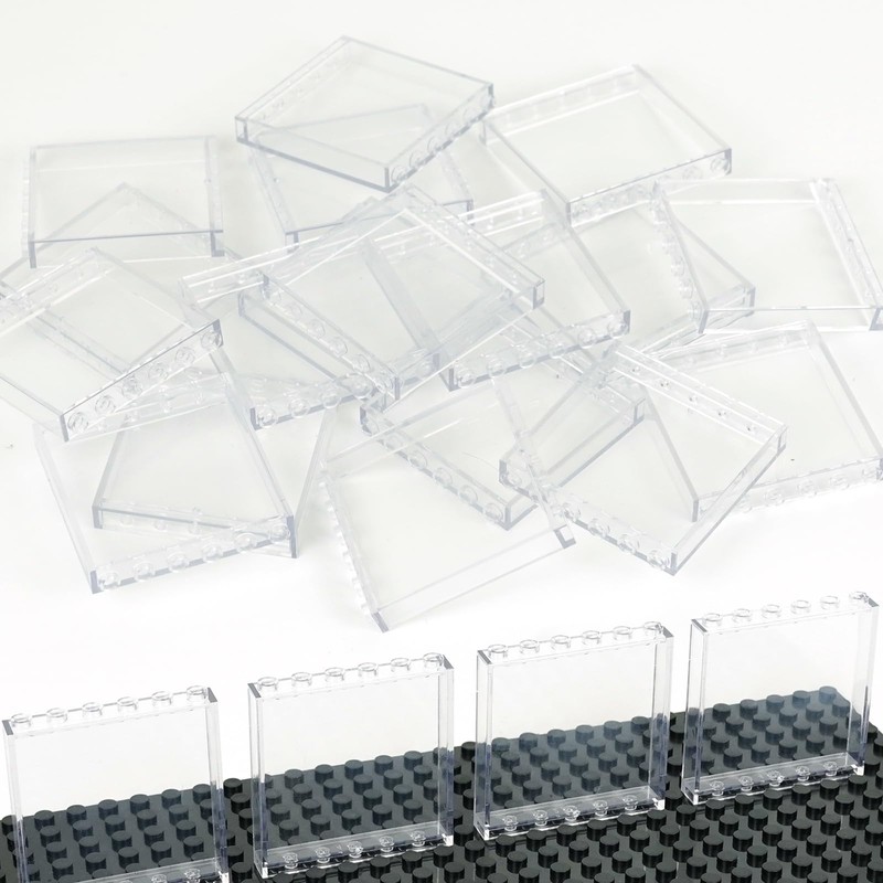 Clear Tranparent Flat Plates Bricks, 24 Pieces and Parts 1x6x5 Classic, Window Bulk Building Blocks Accessories (Transparent Clear)