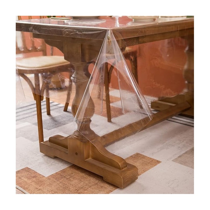 - New Design:Stitching design makes the tablecloth looks more perfect .You will find the elegant stitching around the table.Clear vinyl Tablecloth Protector allows the beauty of your natural wood table or fine linens to show through and it can be easily cut into the size you need to cover other stuff.