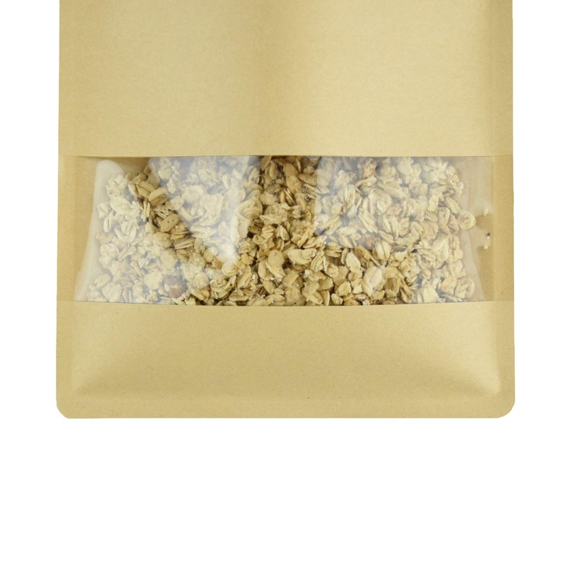 Clear Window & Brown Non-Laminated Kraft Paper Zipper Seal Heat Sealable Packaging Bags for Small Business, Bulk, Food Storing, Beauty Sample Kit, Freeze Dried Candies (100, 5.91 inch x 6.30 inch)