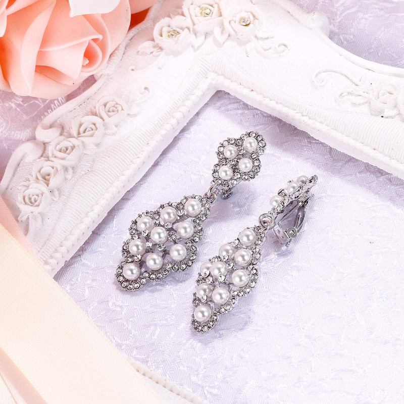 Clearine Pearl Clip On Earrings Without Pierced Ears Crystal Simulated Pearl Elegant Vintage Hollow Chandelier Dangle Clips On Earrings, Crystal Alloy Steel, Artificial pearls