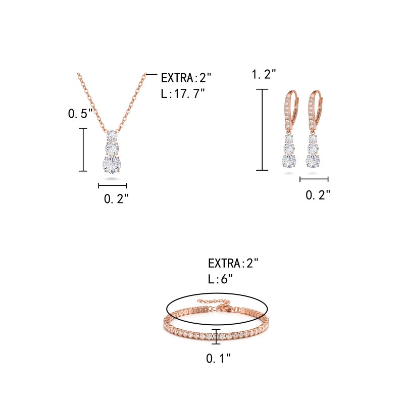 - Size: zircon necklace: chain length (adjustable): 17.7-19.7 inches, pendant size: 0.5 in x 0.2 in. Earrings size: 1.2 inches x 0.2 inches. Tennis bracelet length: 6-8 inches, width: 0.1 inches. Total weight: 10.5g
