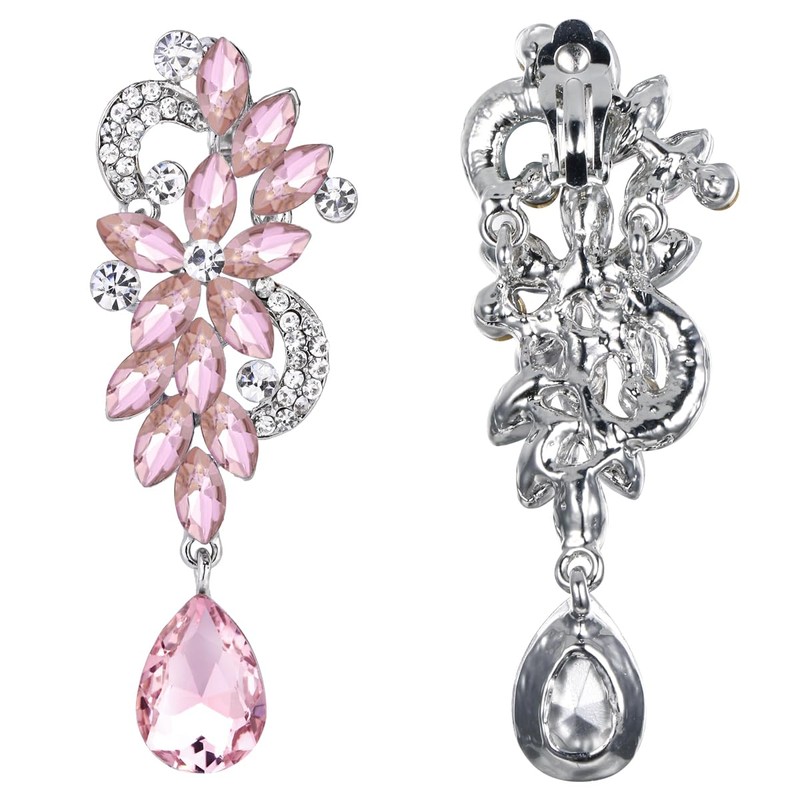 Clearine Women's Bohemian Boho Crystal Flower Wedding Bridal Chandelier Teardrop Bling Long Screw Back Clip On Earrings Dangle Pink Tourmaline Colour Silver Tone, Crystal