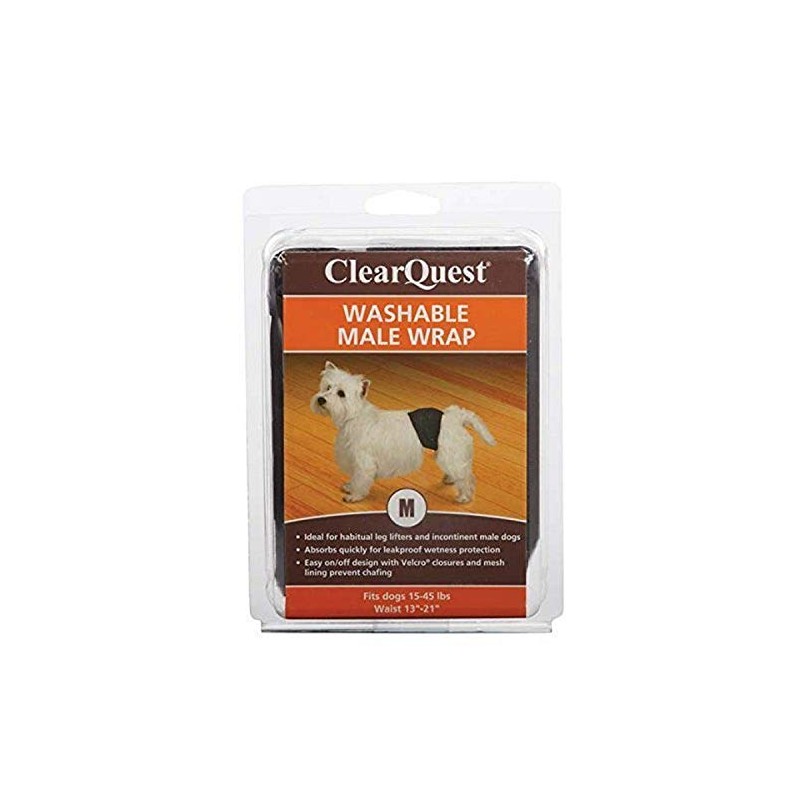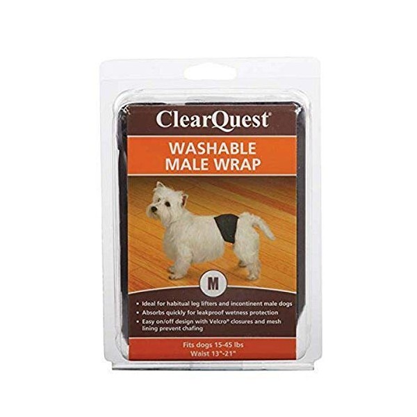 ClearQuest Washable Male Dog Wraps, Reusable, Leakproof Wetness Protection - Medium, Black