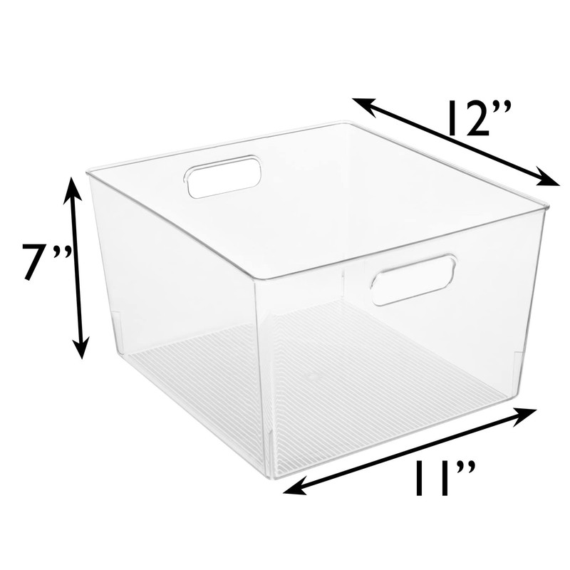 - IDEAL STORAGE CHOICE C These large capacity bins are great for creating a clean and organized refrigerator or pantry. Perfect deep plastic home storage organizer bin for cube furniture shelving in office, entryway, closet, cabinet, bedroom, laundry room, nursery, and kids toy room. Ideal for kitchen storage, pantry storage, fridge storage and your pantry cabinet or storage cabinet. You can use these storage organizers anywhere in your home.