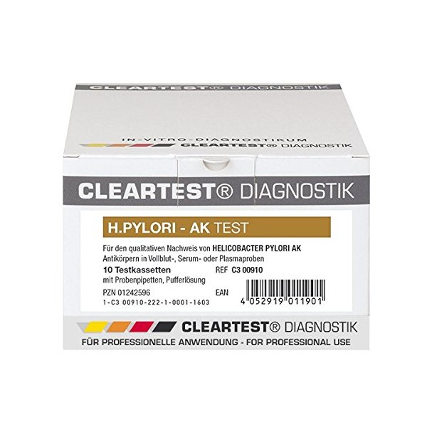 CLEARTEST 01242596 Pylori Test Cassettes (Pack of 10)
