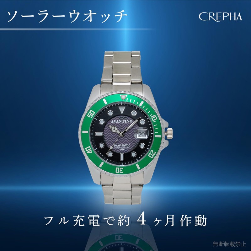 - Functions: Solar charging (lasts about 4 months on a full charge), date display, bezel anti-reverse rotation function