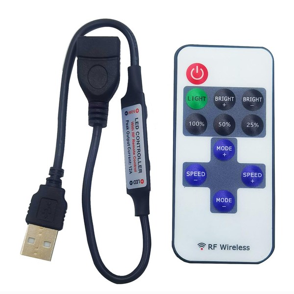- Package: 1 x USB LED controller, 1 x RF remote control (battery not included)