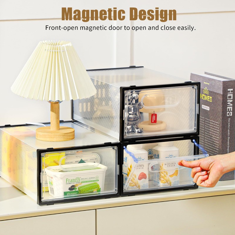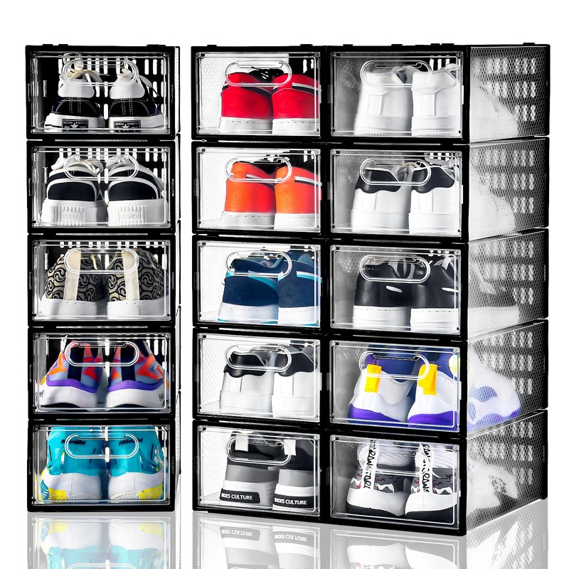 Clemate 15 Pack Shoe Storage Boxes, Clear Plastic Stackable Shoe Organizer for Closet, Shoe Box with Magnetic Door, Foldable Shoe Storage Bin, Sneaker Storage Box Shoe Rack Container Holder, Size 9