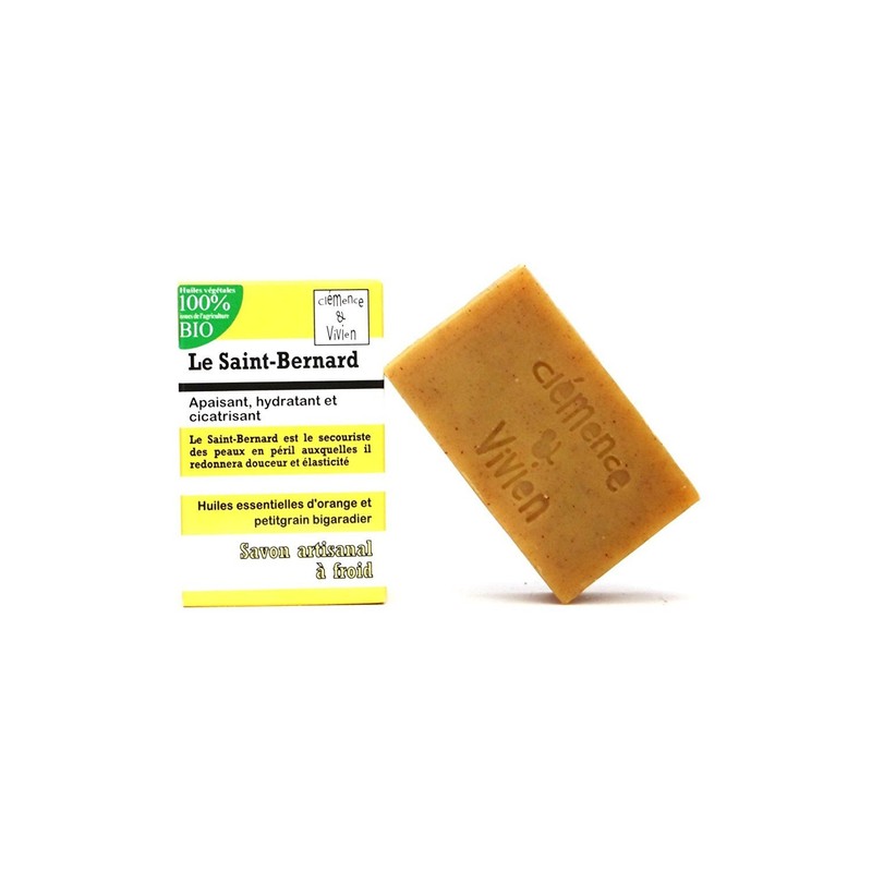 Saint Bernard soap soothes, moisturises and heals. It is the pocket of the skin in danger which provides soft and elasticity. The Duo D'huiles essential D sweet orange and petitgrain bitter orange gives the skin elasticity and healing. Soap of this castor oil, is ideal for skin that is more damaged and désydratées, and its activity is anti-inflammatory thanks to the resence Turmeric Flowers. Saint Bernard soap is ideal for changing the skin.