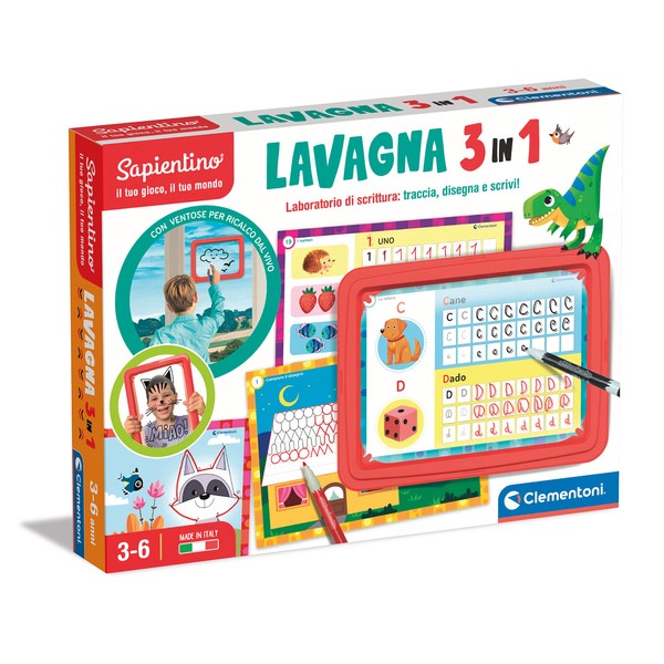 Clementoni 16391 Sapientino 3-in-1 Blackboard with Transparent Board, Writing Laboratory, Educational Game for Children 3 Years, Made in Italy, Multicoloured