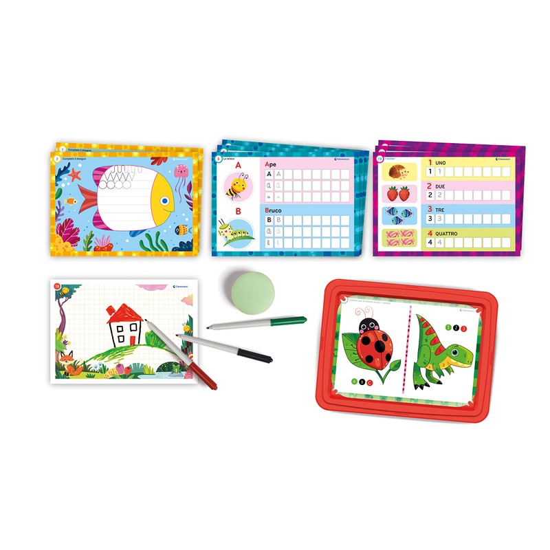- Game content: thanks to the special board with a transparent plate, a marker and many cards with pregraphism and prescription activities, learning to write becomes easy and fun