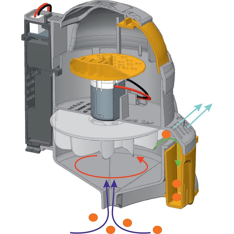 - Equipped with a dual-axis electric motor to which an extender shaft and fan are attached, this little robot can dislodge and suck up small debris such as dust and crumbs.