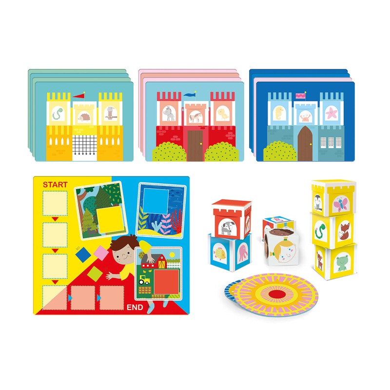 - Features: The cubes are illustrated on each side and should be stacked according to the usage space (farm, savannah, forest and sea)