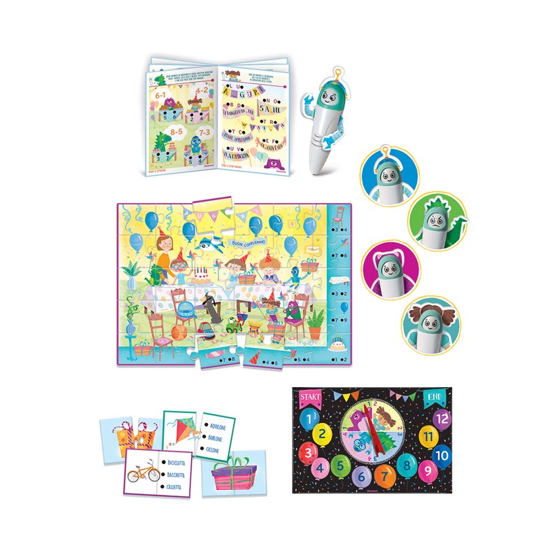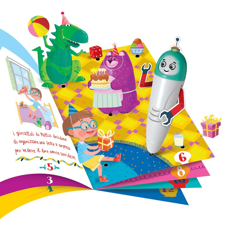 - Features illustrated album that tells a story and suggests learning activities on letters, numbers, operations, and logic associations that can be solved with the cute electronic pen.