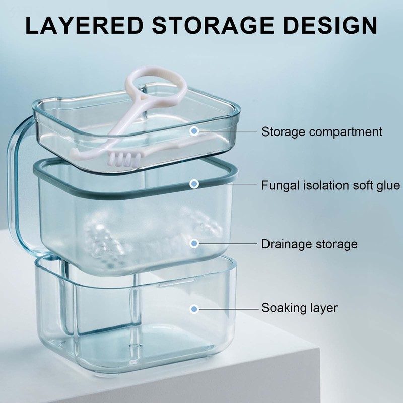 - 2. Three-layer and innovative design: with a storage area, drainage layer and soaking layer, the care of your braces or dentures is simplified and their hygiene is ensured.
