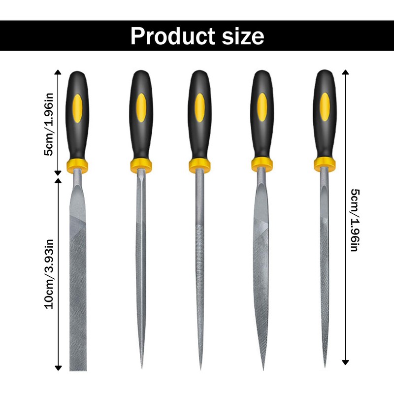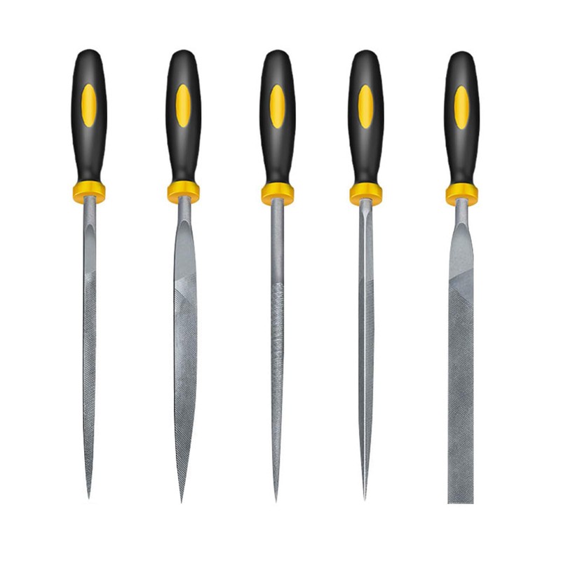 1. This unique file set contains five different needle files - flat, semi-round, square, round and triangular, each of them is 3 x 140 mm in size and offers versatile applications.