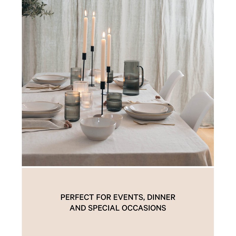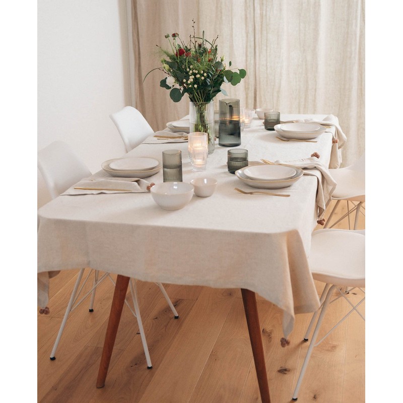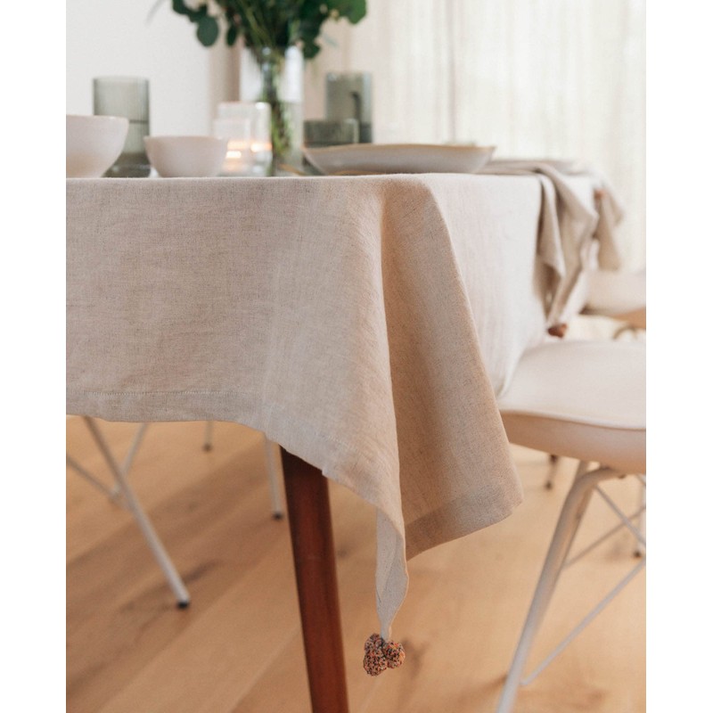 Cleo Tablecloth Natural Cotton Linen Mix with Pompoms 140cm x 250cm
