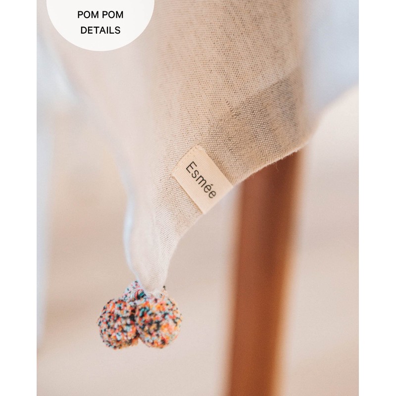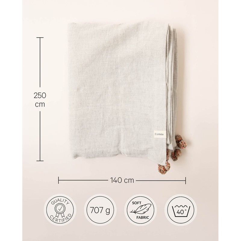- Made of 50% linen / 50% cotton, with coloured pom poms