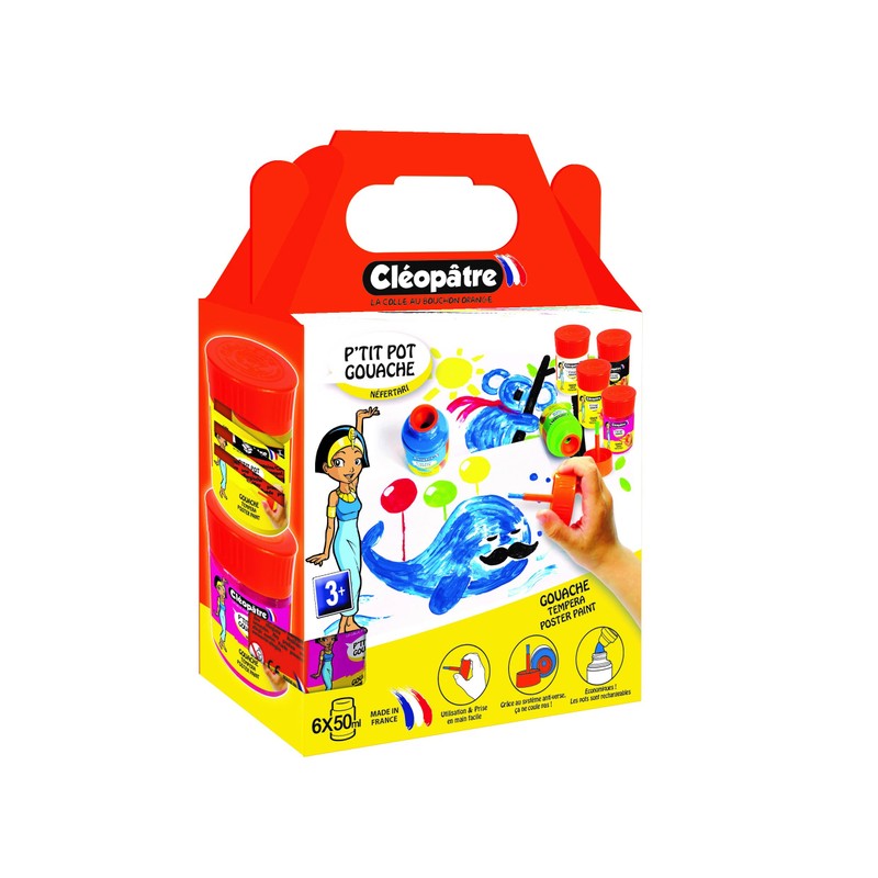 - Set of 6 small pots of 50 ml Néfertari gouache (white, black, primary blue, primary yellow, magenta, spring green)