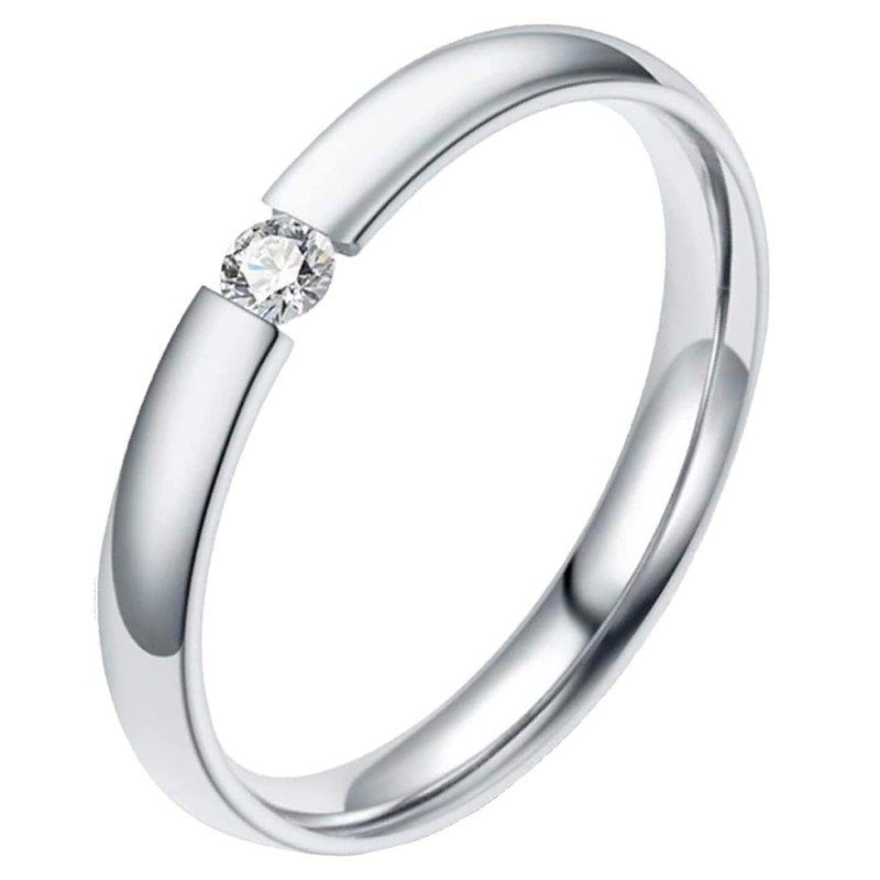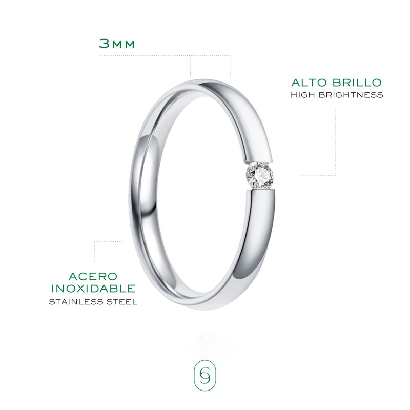 Clepsidra® Anillos de Promesa Acero Inoxidable con piedra central. Anillos de Mujer resistentes. Accesorios y Joyeria para Mujer de uso diario. Anillos de compromiso elegantes. Wedding ring. Jewerly