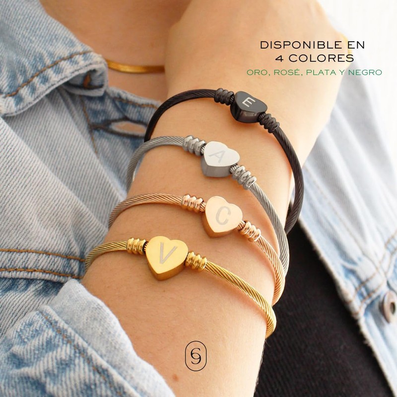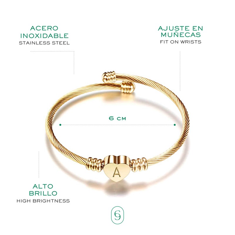 Clepsidra® Pulseras de mujer plateadas o rosadas personalizadas con inicial. Accesorios y regalos para mujer elegantes y resistentes. Joyeria de acero inoxidable con dijes para mujer A-Z. Brazalete ajustable. Gift… (AJUSTABLE, R, DORADO)