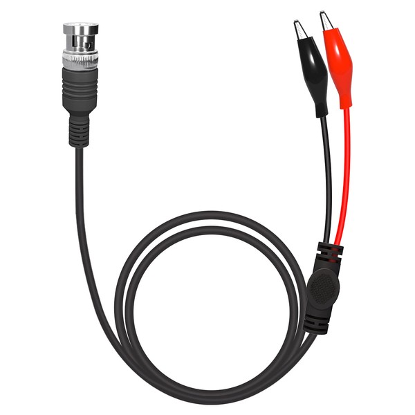 Features · High quality, soft and durable. Compatible with all BNC interface devices such as oscilloscope, signal generator, video surveillance etc. The unique design of the wire tail jacket can effectively protect the cable Red and black branch lines are reinforced with stronger sheath. Widely applied for vehicle maintenance, electrical or industrial testing. Parameter Coaxial cable impedance and material: 50Ω, PVC & Copper Max voltage and current: 500V 5A Total Length: Approx. 4.3 ft (1.1 m). Main cable diameter: 0.2 inch (4 mm); Sub-cable diameter: 0.1 inch (3 mm)