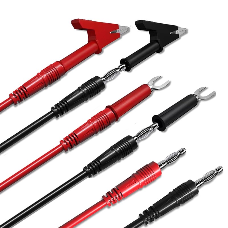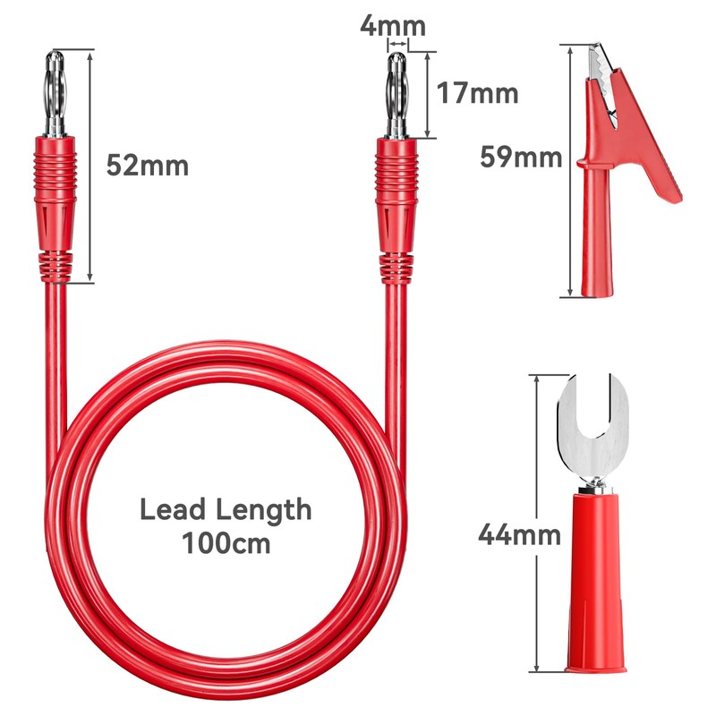 • The test leads are made of high quality PVC and copper, which have better conductivity and stability. The 4 mm thick cable is soft and flexible and has a long service life. Length: 1m