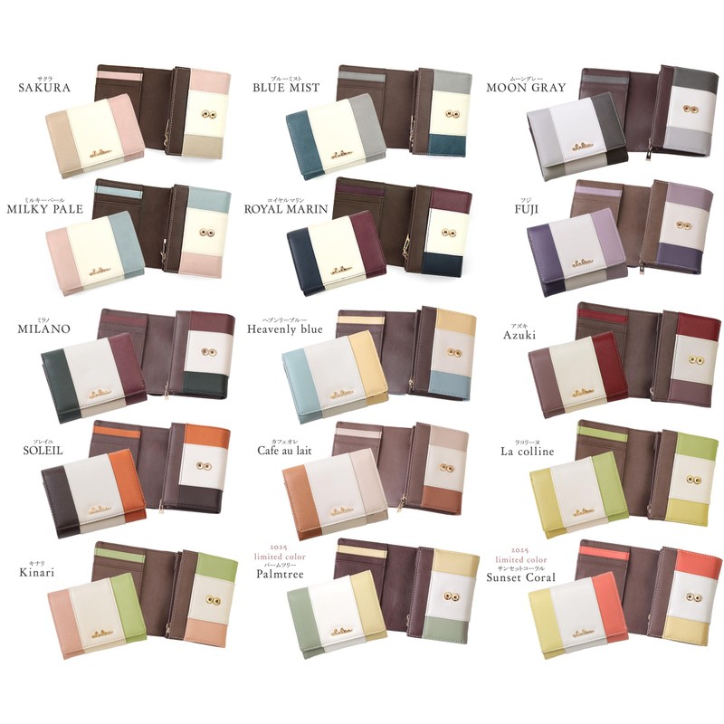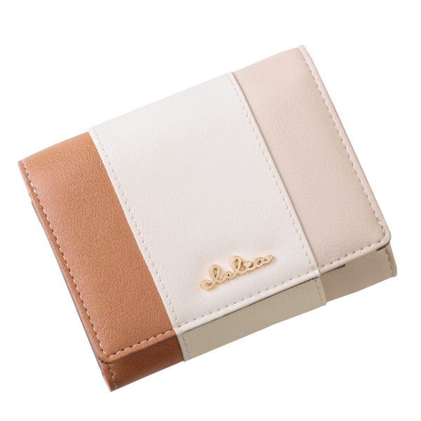 Cleria CL-17075 Women's Folding Wallet, Large Capacity, Bi-fold Tricolor Riberte Series, Cafe au lait