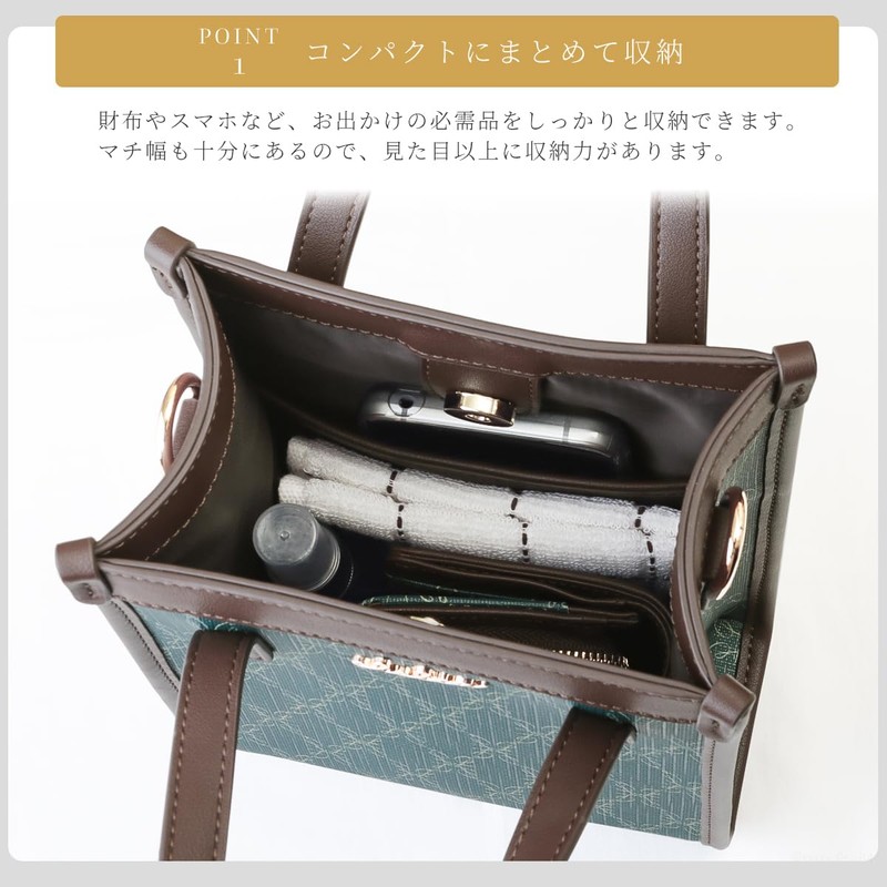 - (Great for a quick outing): Clelia is "cute and functional, but doesn't want to be a tokimeku. It was created to realize the beauty of a woman. Compact size but high enough to hold your wallet and handkerchief. If you store your smartphone in the inner pocket, you can use it as a slightly larger smartphone shoulder strap
