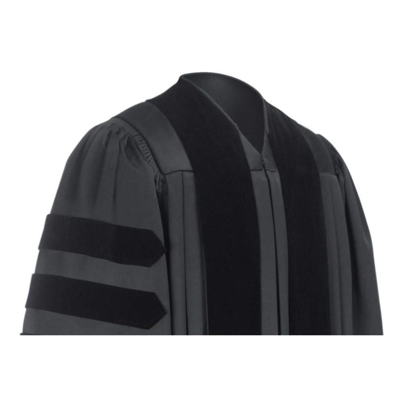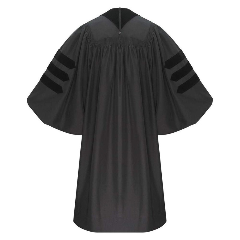 - ✅ ELEGANT DOCTORAL ROBE ACCENTS: Featuring pristine black velvet, the Deluxe Doctoral graduation gown showcases finely fluted shoulders and yoke, along with a braided rope at the nape of the neck for a classic academic look.