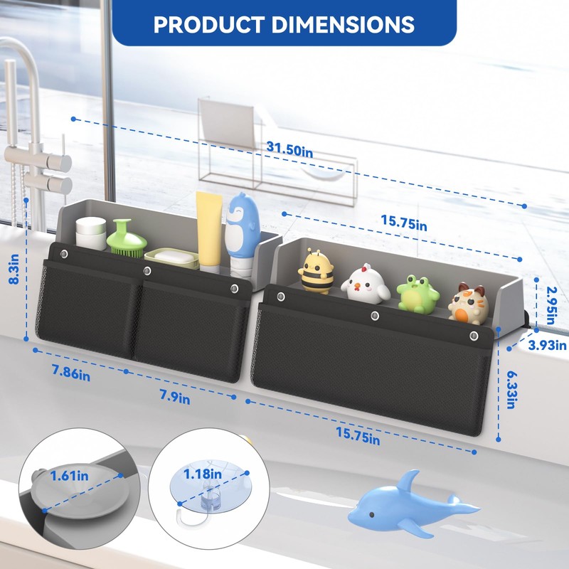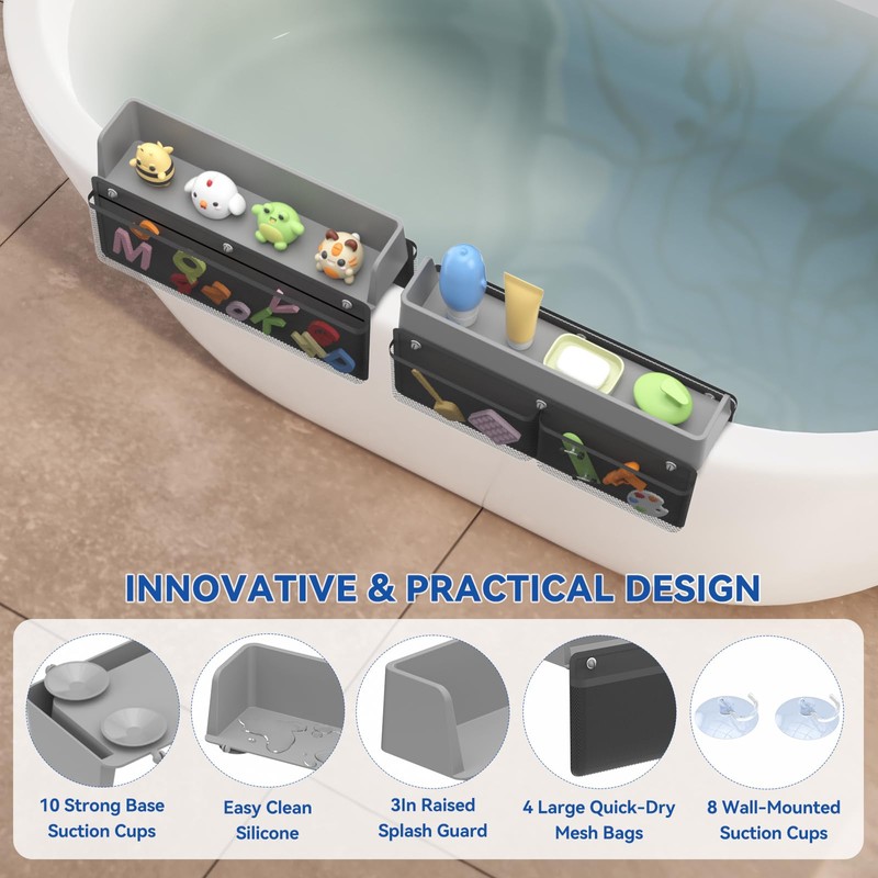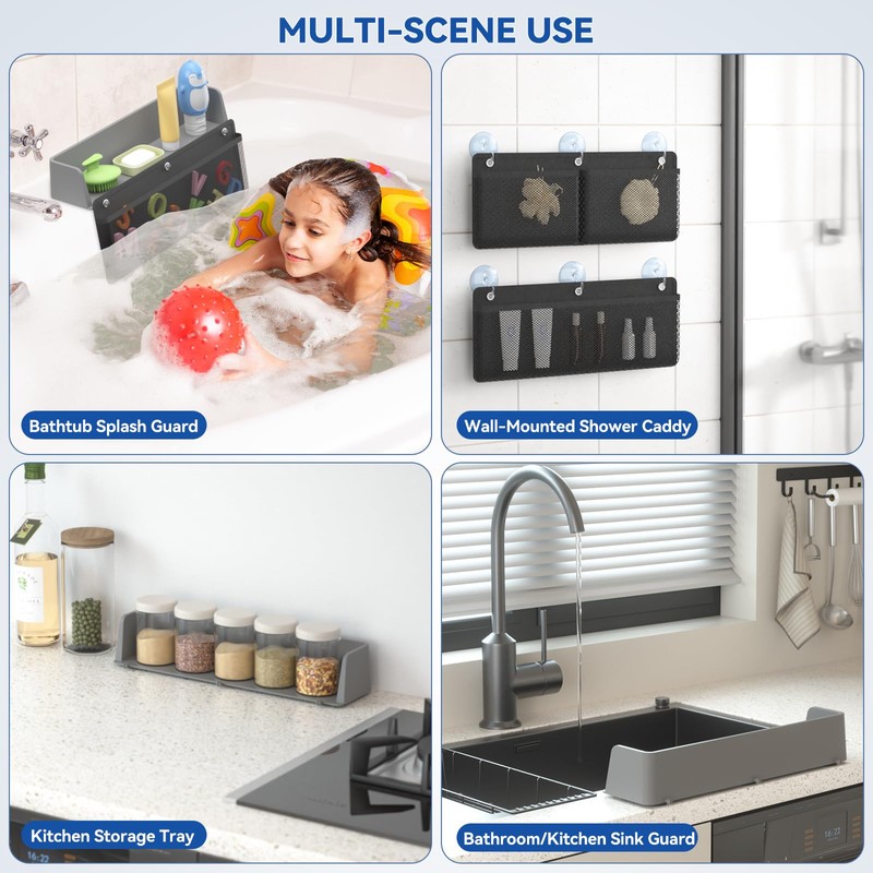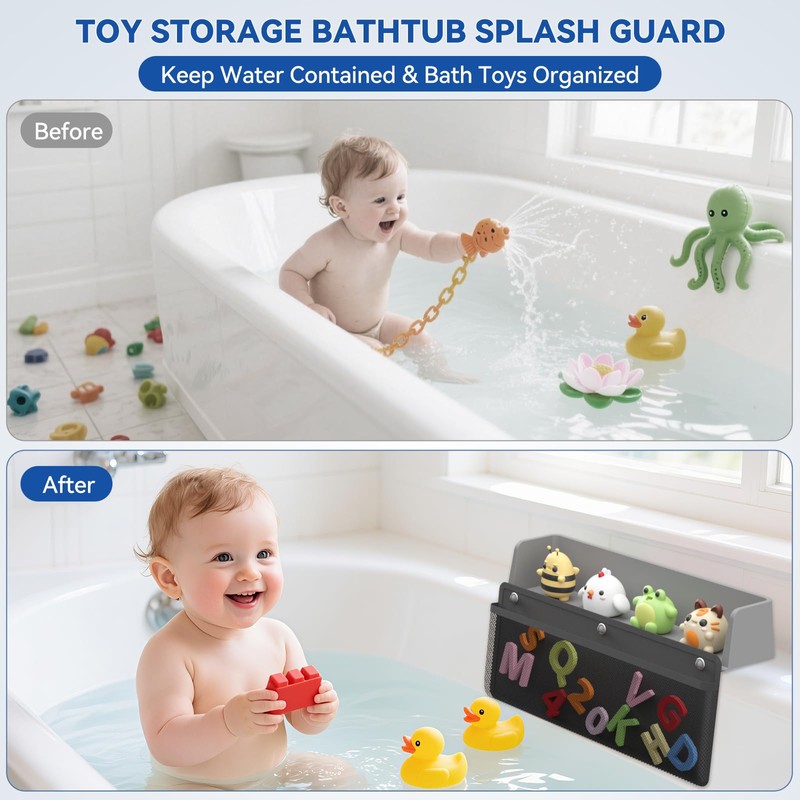 CLESOO CLESOO Bathtub Splash Guard 2 Pack Play Shelf Toy Tray Caddy Holder Storage Suction Cups Attach to Bath Tub No Mess Water Spill in Bathroom for Toddlers Kids Baby