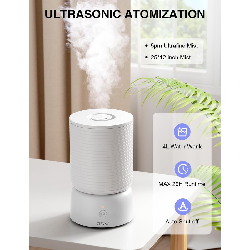 - SMART APP, VOICE & BUTTON CONTROLS: Our smart humidifier for bedroom can be controlled through CLEVAST APP from anywhere. You can easily switch it on/off, adjust humidity level & mist intensity , set humidifying timer & schedule, and save your preferred settings. It also works with Alexa, Google Assistant for simple voice control, frees your hands. (ONLY WORKS WITH A 2.4GHz NETWORK)