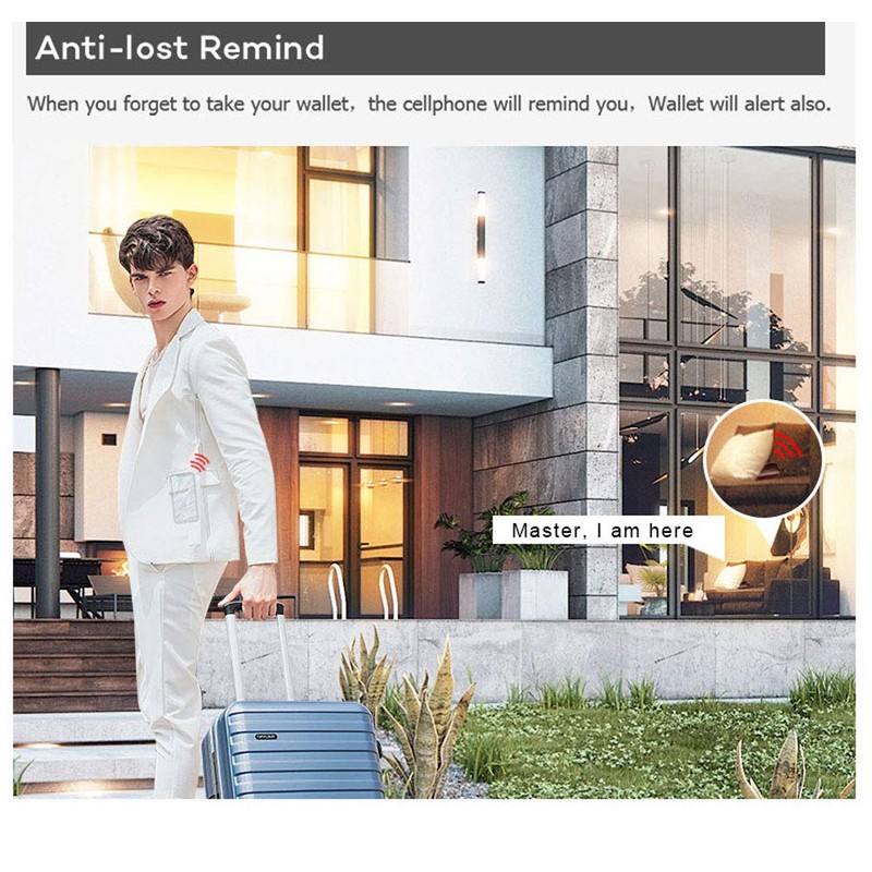 - 【Two-way Anti-lost】Ring the wallet from the phone. Ring the phone from the wallet. Alarm when the wallet or the phone is left behind or stolen.