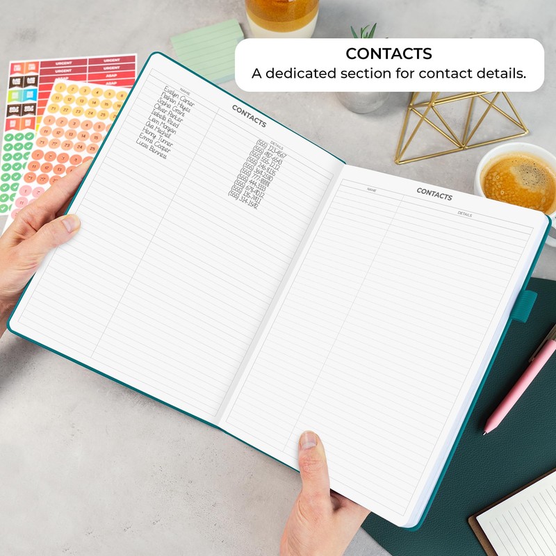 - AN EASY WAY TO STAY ON TOP OF EVERYTHING: This time box planner is undated and lasts 12 months, so you can start anytime. Inside, you will find monthly calendars, weekly pages with time slots, goals and to-do list, and a contacts list.
