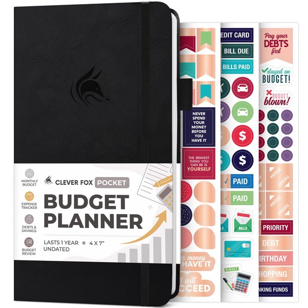 Clever Fox Budget Planner Pocket – Mini Expense Tracker Notebook. Monthly Budgeting Journal, Bill Planner & Finance Book to Control Your Money. Undated - Start Anytime. Small Size, Black