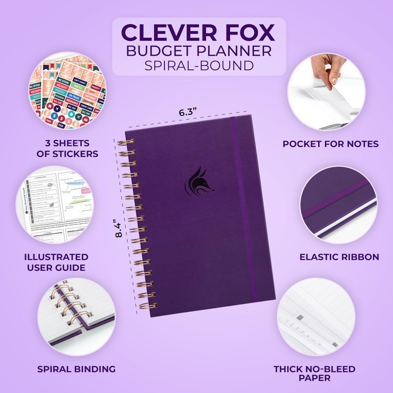 Clever Fox Budget Planner Spiral – Expense Tracker Notebook – Monthly Budgeting Organizer, Finance Logbook & Accounts Book to Control Your Money – Undated Bill Tracker, 6.3x8.4” (Purple)