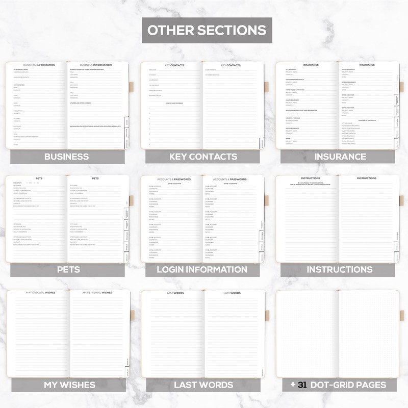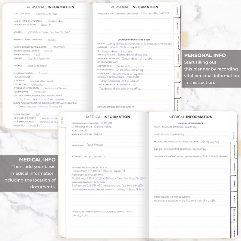 - PREPARE DETAILED INSTRUCTIONS TO GUIDE YOUR LOVED ONES: This guided final arrangements planner is an easy-to-use tool for organizing all essential personal information, from medical data to passwords and financial records.