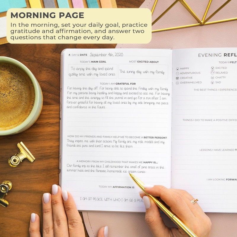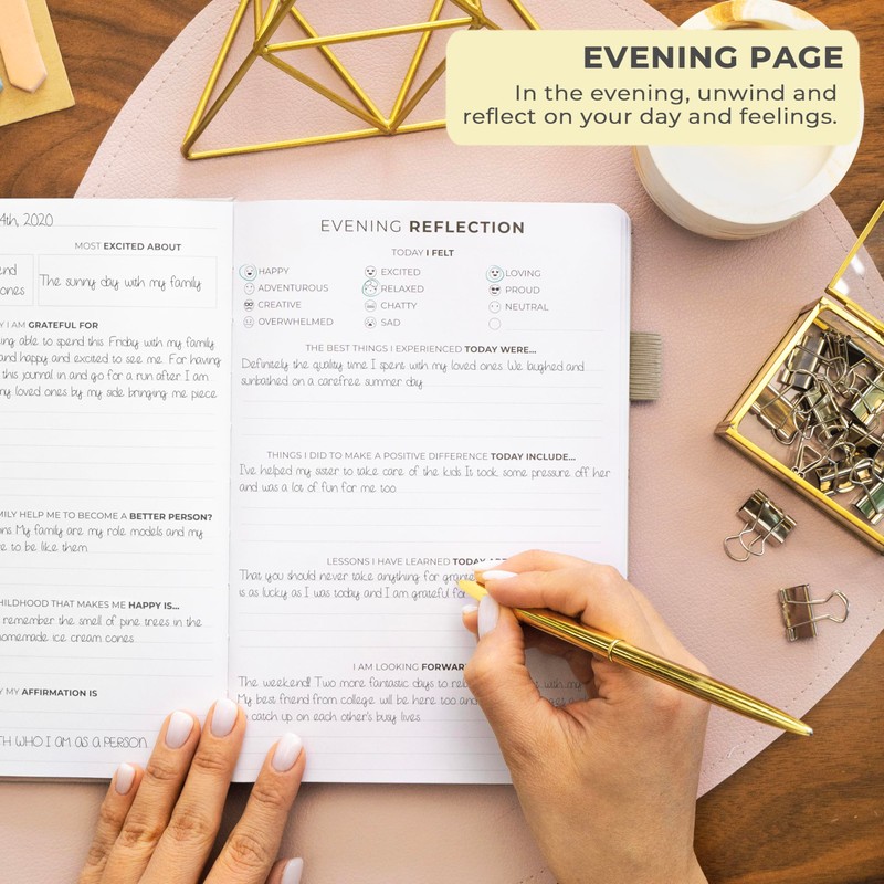 • STIMULATE GROWTH WITH DAILY REFLECTION: Reflect on your day and foster self-awareness with evening reflection pages and regular weekly exercises.