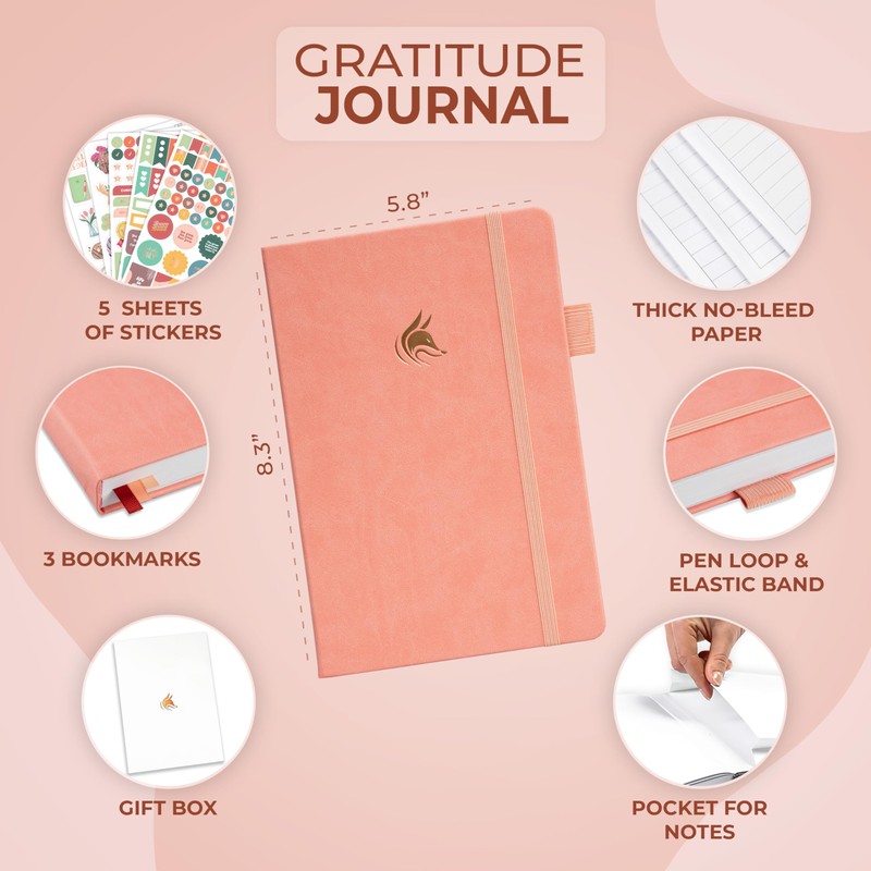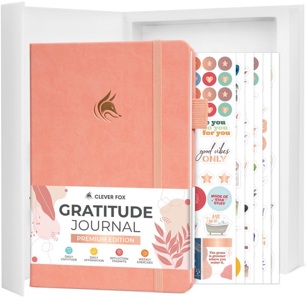 Clever Fox Gratitude Journal Premium - Happiness, Positivity & Affirmation Journal – Inspirational Daily Notebook, 6 Months (Peach Pink)