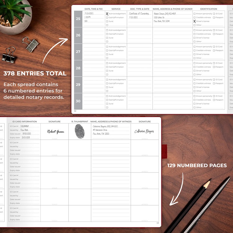 - NOTARY JOURNAL FOR EFFICIENT RECORDKEEPING: This hardcover notary journal has 129 numbered pages with 378 entries to keep comprehensive notary records. The notary book complies with legal guidelines in all U.S. states, except for Illinois and Hawaii.