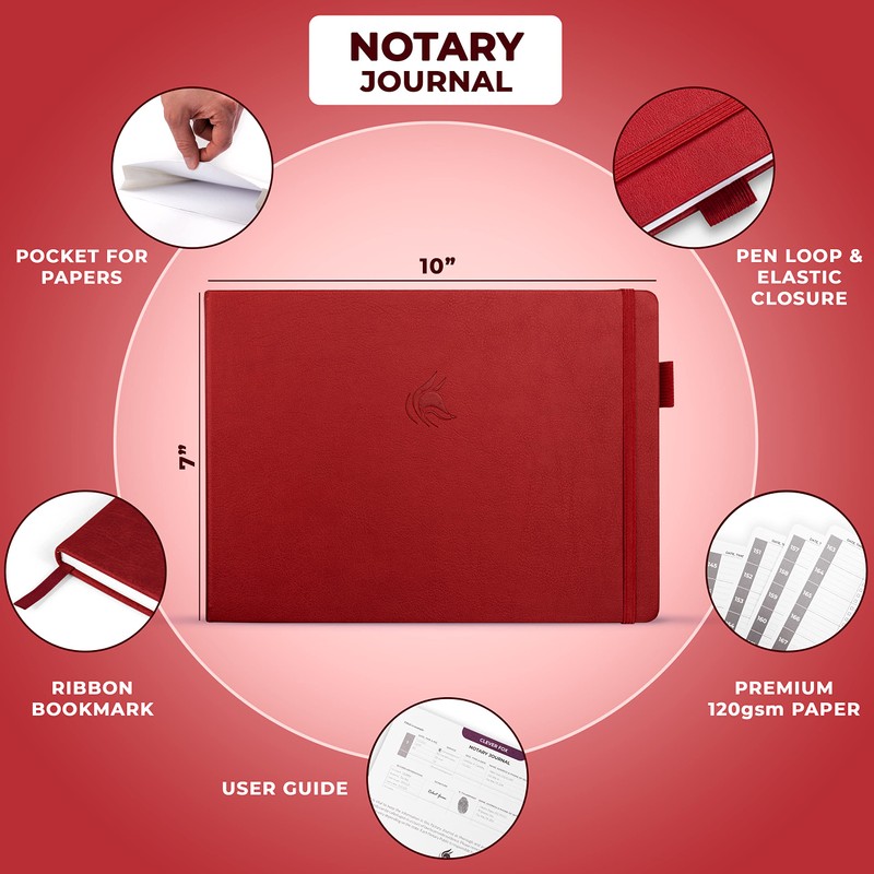 - SPACIOUS LARGE FORMAT & USER GUIDE: This notary public record book comes in large format and measures 10 by 7 inches providing plenty of space to write down every detail. Inside, you will also find an illustrated user guide.