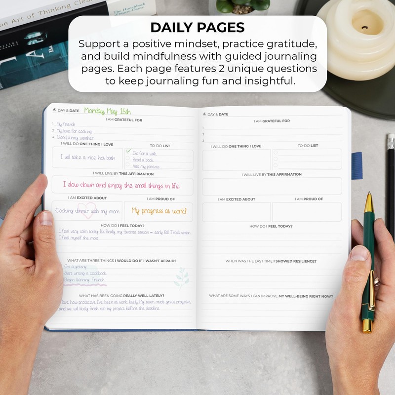 - PART 2: 180 DAYS OF JOURNALING – The 2nd part of the self-reflection journal consists of 180 daily pages that prompt you to practice gratitude and affirmations, do more of what you love, reflect on how you feel, and answer 2 questions that change daily.