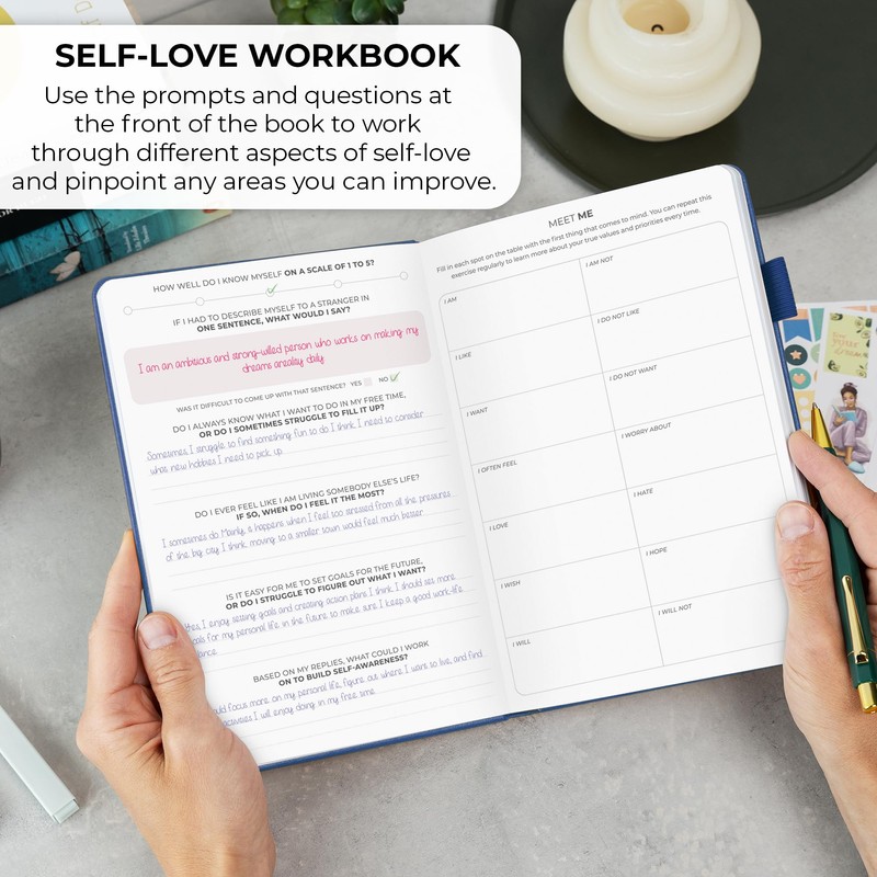 - A GUIDED JOURNEY TO SELF-LOVE –Spanning 180 days of journaling, this self-love journal blends insightful prompts with practical exercises to deepen your sense of self-worth, cultivate self-compassion, and consistently practice unconditional self-love.