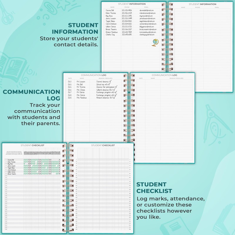 - ALL YOU NEED FOR LESSON PLANNING & MORE: Inside, you will find spacious weekly lesson plans, monthly calendars, student checklists, a communication log, school events schedule, and dedicated pages for storing student information and important dates.