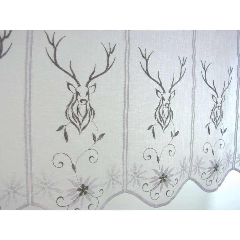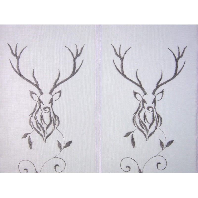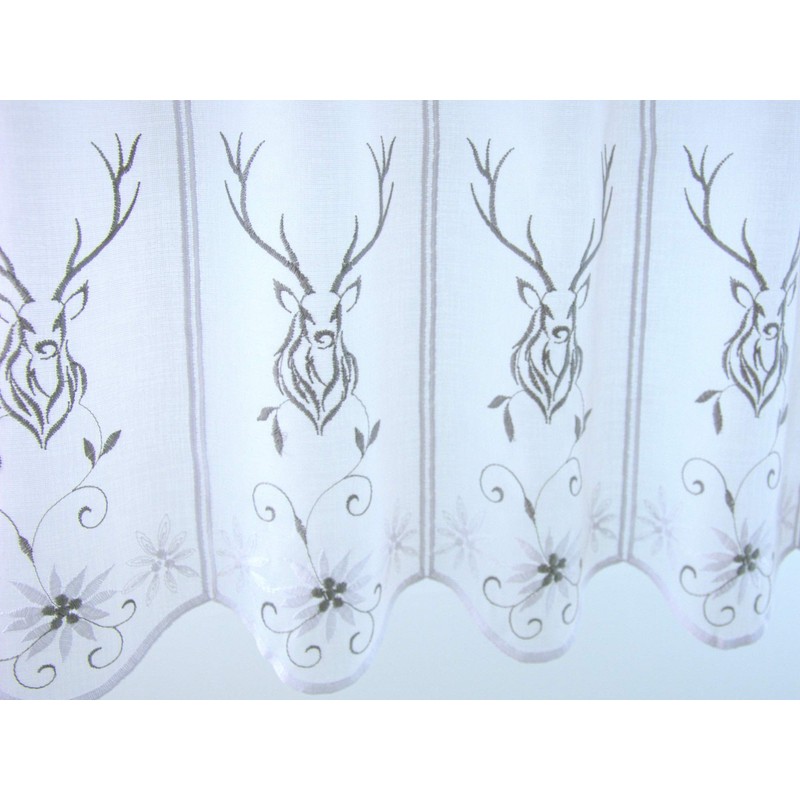 Clever-Kauf-24 Net Curtain Country House Stag Embroidered Bistro Curtain Height 45 cm (Width 108 cm)