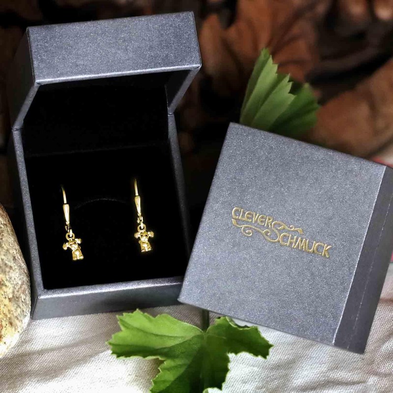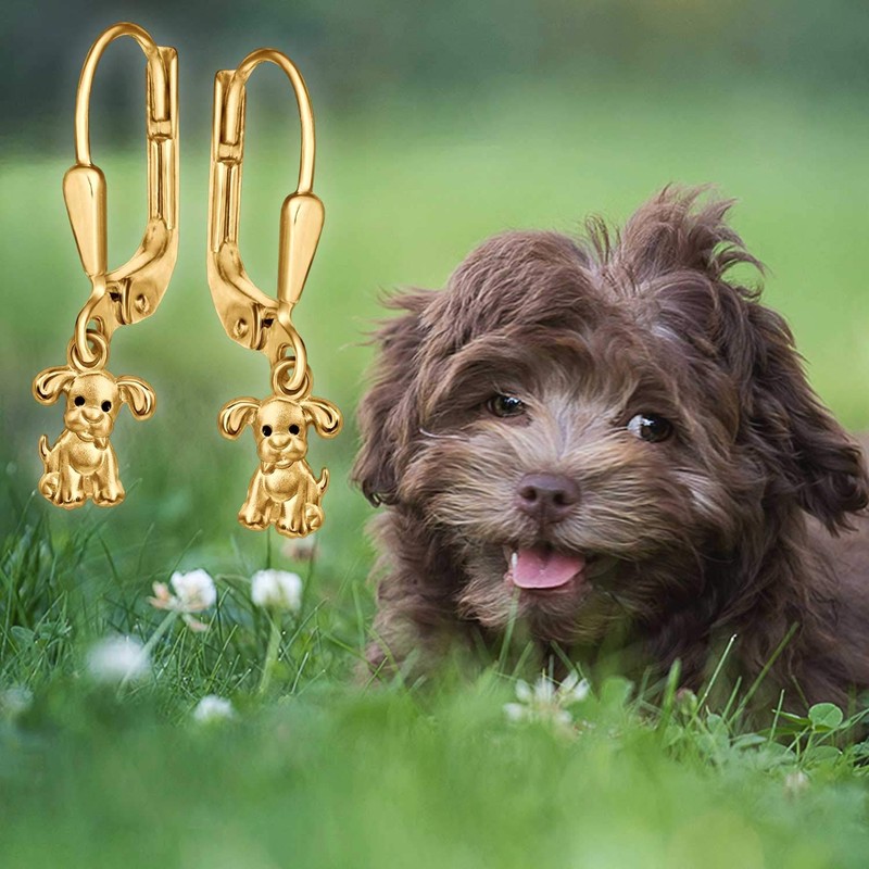 - Gold jewellery for girls: a pair of gold earrings with small dog motif and leverback hinge total approx. 24 mm long