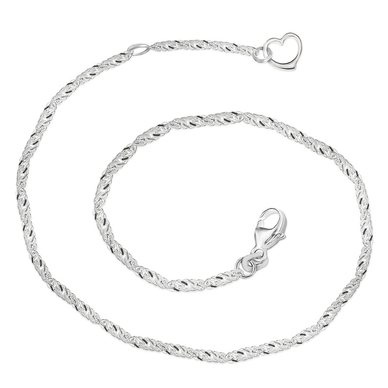 - Heart jewellery for women or teenagers as foot jewellery: a silver anklet, simple design (without pendant) in slightly twisted look (Singapore chain) with small heart open, total approx. 28 cm long