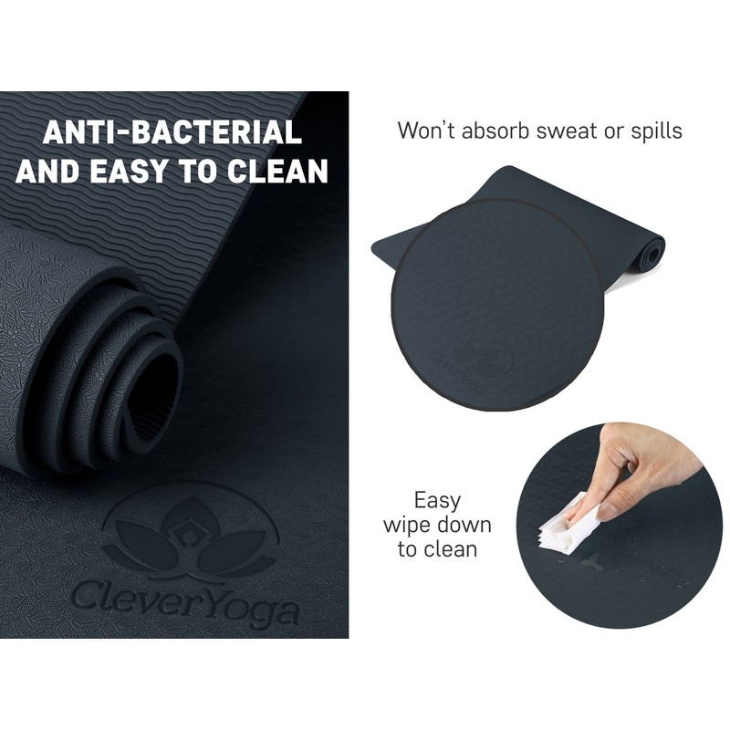 Clever Yoga Mat Non Slip - Longer And Wider Than Other Exercise Mats - ¼-Inch Thick High Density Padding To Avoid Sore Knees During Pilates, Stretching & Toning Workouts For Men & Women
